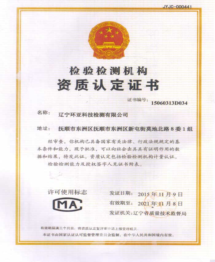 檢驗(yàn)檢測機(jī)構(gòu)資質(zhì)認(rèn)定證書
